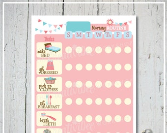 Printable Morning Routine Chart for Children, Girls, Pink, Instant Download