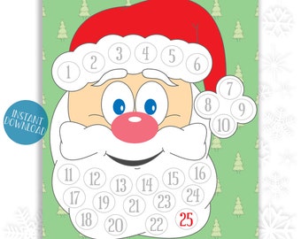 Christmas Advent Calendar, Christmas Countdown, Kids Advent Calendar, Printable Christmas Calendar, Santa's Beard
