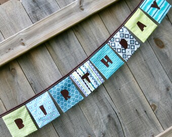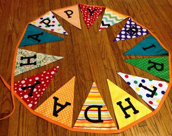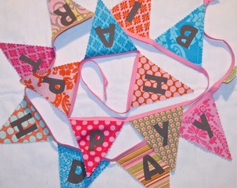 Girls HAPPY BIRTHDAY Banner, Reusable Fabric - Sweetwater Make Life by Moda - birthday banner, red green blue yellow, primary colors