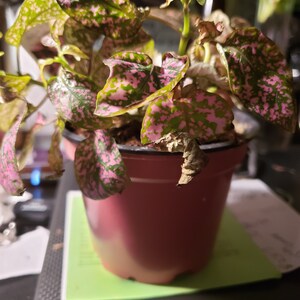 enjoys a light spot, but preferably not in direct sunlight or a draught. The paler the leaves, the more light the plant needs. The soil can be moderately damp, but do not have the roots standing in water if possible.