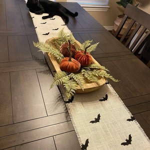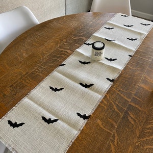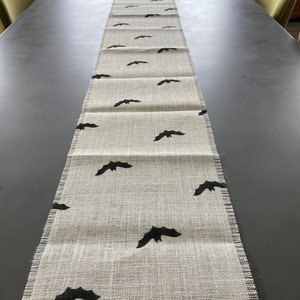 Halloween Burlap Table Runner, Halloween Black Bats Runner, Halloween Runner, Halloween Decor, Halloween Party