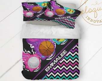 Girls Sports Bedding, Personalized with Name, Basketball, Soccer Ball, Softball, Duvet Cover or Comforter King, Queen/full, Twin xl #446