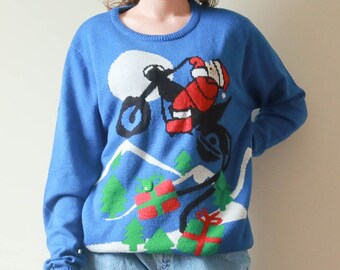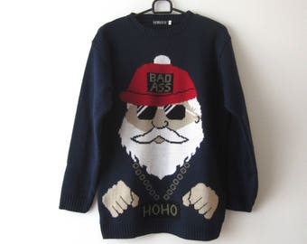 Childrens boys girls toddlers kids Christmas hand knit Father Christmas / Santa motif picture holiday sweater jumper