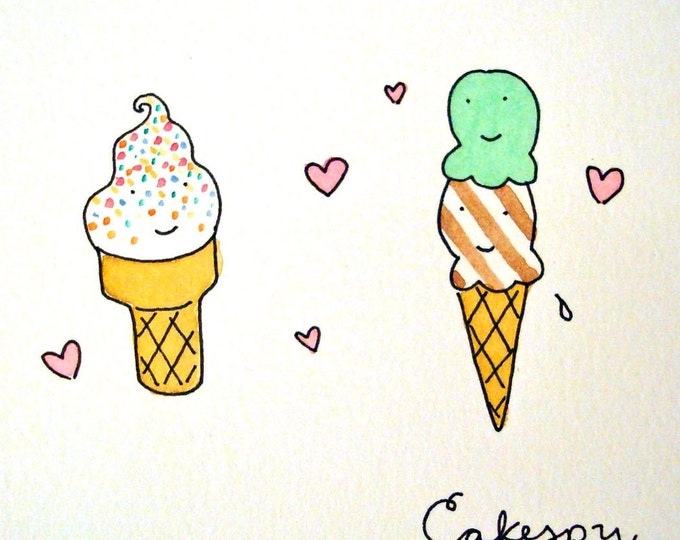Original Watercolor Painting Softserve and Ice Cream Cone