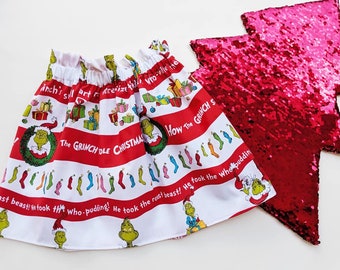 Grinch Skirt How the Grinch Stole Christmas Skirt Holiday Skirt Grinch Party toddler skirt girls skirt with Grinch Christmas Clothes RARE