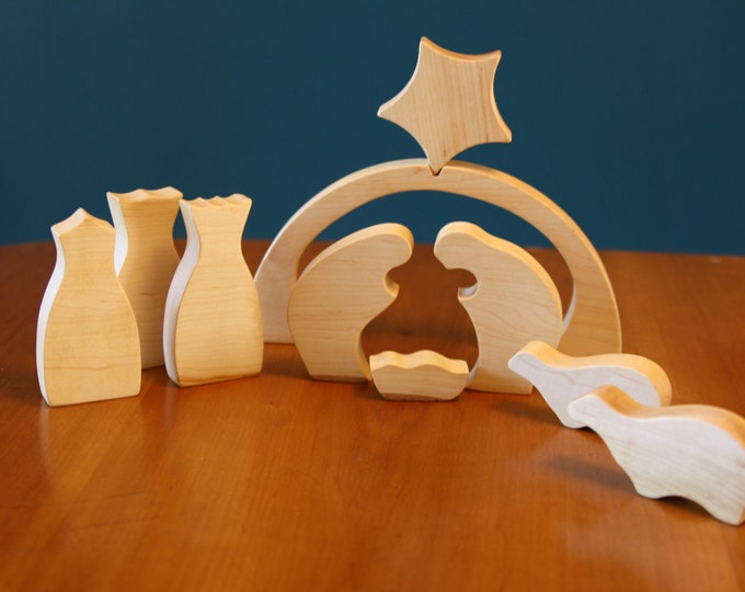 Modern Nativity Set in Wood by Little Alouette 10 piece set