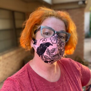 Each mask features a hidden inner pocket for your own filter addition. We provide two removable non-woven polypropylene filter layers to start. Masks have an elastic headband or ear elastic for adjustability and nose wire for a custom fit. Tell us your elastic preference in the personalization field.