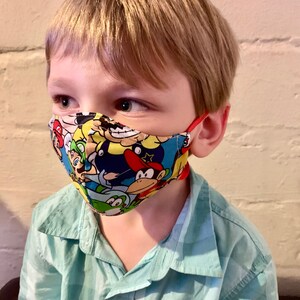Skulls and Crossbones shaped masks for kids and adults. Made with 2 layers; 100% printed cotton outside, lined with plain 100% cotton inside.