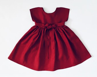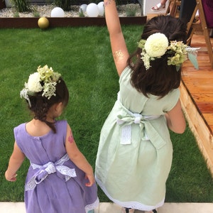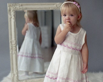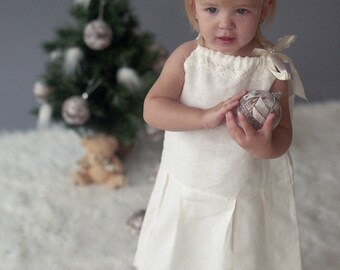 Girl's dress made from linen fabric. Linen is great material for summer clothes. The garments feel better and softer after every wash! Linen fabric has the ability to absorb and lose water rapidly. Linen is also naturally anti-bacterial.