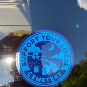 Support Your Local Cemetery 3" Glossy Vinyl Sticker.