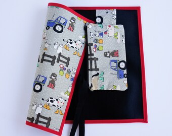 Chalk Mat / Chalkmat : Dinosaurs - chalk cloth & laminated cotton - arts and crafts coloring travel placemat - Sale take 20% Off