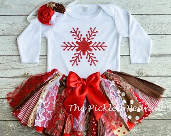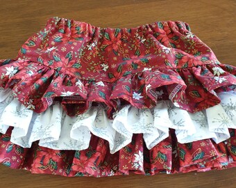 Christmas Fabric Scrap Tutu READY TO SHIP size 0-6 months