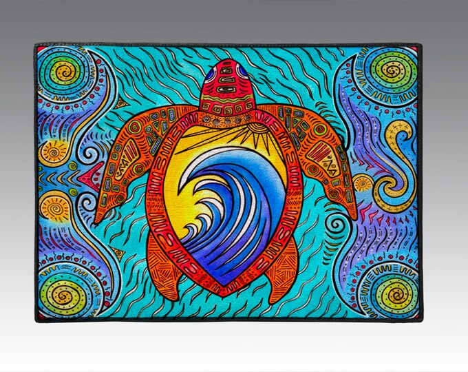 Waves of Turtle, Turtle Art, 18" x 24" Door Mat, Floor Mat, Home Decor, Sea Turtles, Ocean Art, Tropical