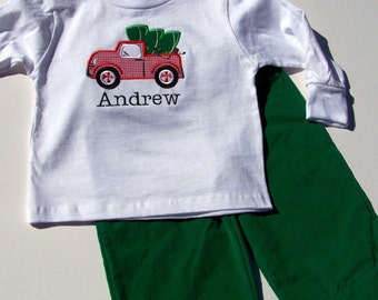 Personalized Santa Appliqued Tee Shirt and Red Corduroy Pants