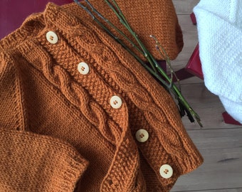 Toddlers/girls cardigan sweater with one button. If you would like buttons all the way down, just let me know. Special detail given to the yoke of the sweater.