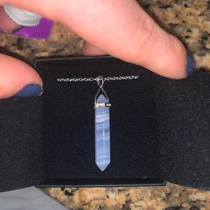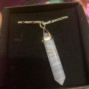 5 out of 5 starsThis pendant is so much better than I had expected! Beautiful finishing! Wonderful to wear! The crystal itself promotes a sense of cool and calm in me - really loving the vibes of Blue Lace Agate. The shipping was very fast as well! I am very impressed with the overall service!