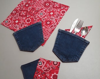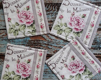 Black and Creamy White Cloth Coasters - Set of 4 Coasters