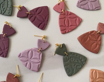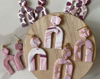 These earrings are uniquely handmade using polymer clay and gold or silver plated earring posts (depending on the style you choose). There may be slight variations or imperfections due to the handmade nature of each earring. They are lightweight, comfortable and will definitely add the perfect statement to your look!