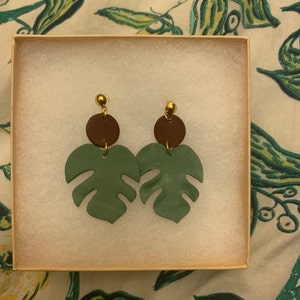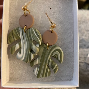 Monstera Leaf Earrings | Handmade | Polymer Clay Earrings | Statement Earrings