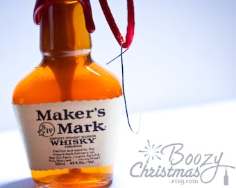 Christmas with an adult twist. Authentic Woodford Reserve Kentucky Straight Bourbon Whiskey 50ml Mini Bottle ornament for your Christmas Tree or any other holiday. An excellent way to express your fondness for a favorite indulgence. Also makes a fabulous gift for your drinking buddies, livens up office christmas parties, and will bring a smile to the face of that friend that, for better or for worse, is known far and wide for his love of a certain tipple.