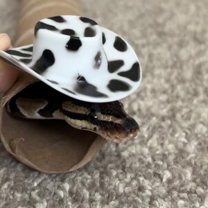 5 out of 5 starsJordan with HissyFitHats is amazing! Etsy estimated delivery to arrive between January 7th - 21st (Ordered December 25th). I messaged Jordan after I didn’t receive the package on January 20th to see if he had a closer estimate for delivery, but since I did not select tracked shipping, there wasn’t much to be done. The package arrived approximately 2 weeks after Etsys estimated dates. None of this was Jordan’s fault seeing as he made and shipped the item within 5 days of me placing the order, but he communicated and ensured he did everything possible to make me happy. The quality of the product is great and knitted better than hats I see at the stores (for humans). Will definitely do business again (and try and bother Jordan less next time) if I need to expand my ball pythons hat collection haha