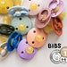 Bib is approximately 10" across and 11" tall. Velcro (snag free) closure.