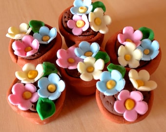 12 x Flower pot cupcake toppers