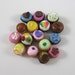 This dollhouse miniature 12th scale set of cupcakes is made from fimo (polymer clay). They come presented on a cute little, three-tiered, metal cake stand. You will get exactly the cupcakes in the photo.