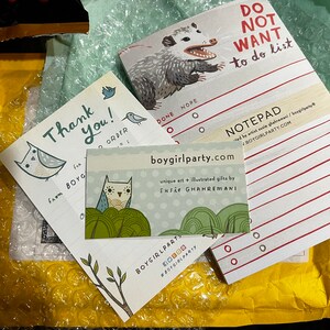 Your order will be thoughtfully wrapped in colorful tissue paper or a patterned paper bag and sealed with a cute sticker with a little owl!