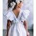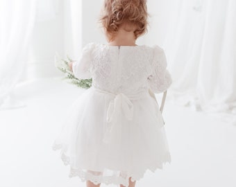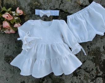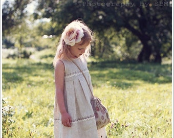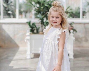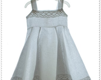 Handmade white linen dress for girl. Linen, lace... The romantic details of the girl's charming dress for special occassions are just like from the wardrobe of a young maiden of bygone days.