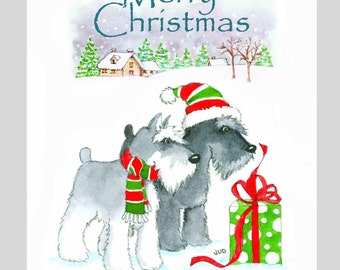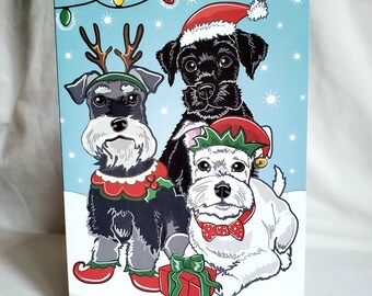 "You have your choice of "Happy Holidays" or "Merry Christmas" on front of this Schnauzer card."