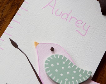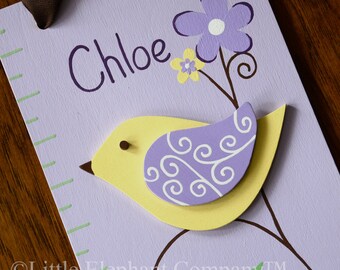 Alexandra Birds Wooden Growth Chart, handpainted, FREE nail cover and personalization