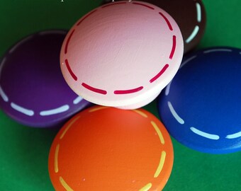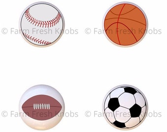 Each of my nail covers (aka drawer knobs) are 1.5 in ches in diameter and handpainted. This particular set of three (3) features a baseball, a basketball and a football.