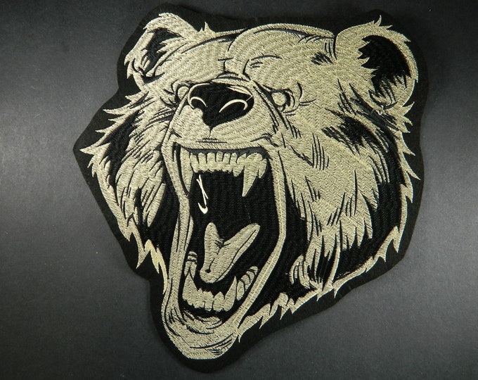 Parche bordado de oso grizzly grande: aplique termoadhesivo bicolor