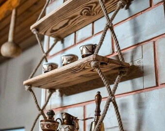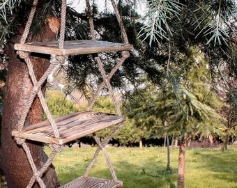 Bookcase Bookshelf Wooden Decorative Design Special Process Triple Rope Shelf Bookcase, Gift, Gift for Christmas, Home Decor, Wall Decor