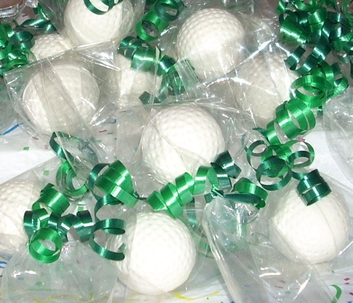 This listing is for 10 golf balls individually packaged in a premium cello bag tied with kelly green and gold ribbon.