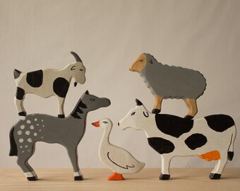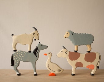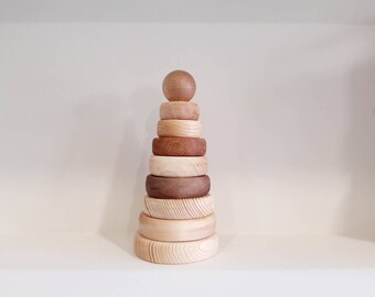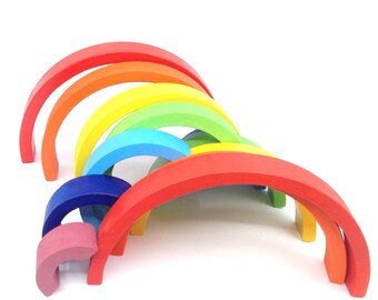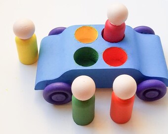 Waldorf Wood Toy Set -Peek-a-Boo Rainbow Family- A Montessori Learning Sizes Toy