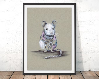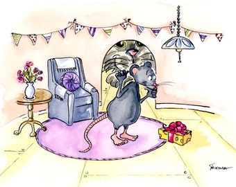 Mouse Tea Party Illustration for Little Girls Room ... Limited Edition 17 x 11 Nursery Wall Art Print