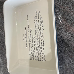 Personalized casserole pan, Hand recipe etched, Favorite Recipe Pan engraved baking dish, Display Pan, Bridal shower gift, Christmas Gift