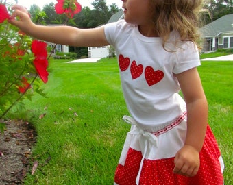 Love Valentines Skirt Set Applique Tshirt and Skirt
