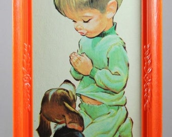 Vintage Framed Charlot Byi Bless Us All Praying Child Print Fleck Bros. 9500