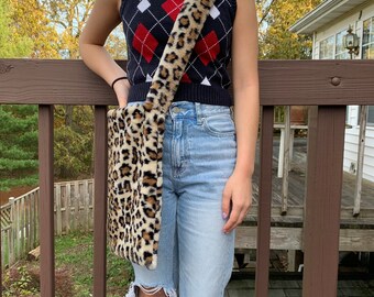 Medium Fluffy Cheetah Print Bag - Brown Animal Print Fuzzy Purse - y2k Tote bag - Animal Print purse