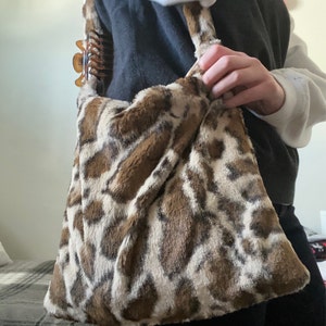 See moreMedium Fluffy Cheetah Print Bag - Brown Animal Print Fuzzy Purse - y2k Tote bag - Animal Print purse