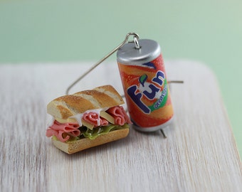 These hoagies were handmade from polymer clay. They dangle from sterling silver ear wires and measure about 1 inch (26mm) in length.