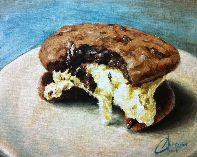 Original oil painting, 8x10", "Ice Cream Sandwich Bite"