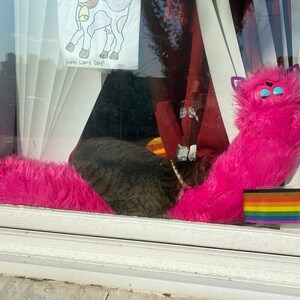 Huge long Furby. 8 foot 8 inches in length. Hand made and hand sewn. Direct message for more information.