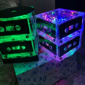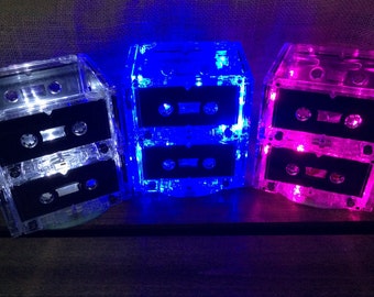 The ORIGINAL Cassette Tape Light Centerpiece by Break the Record. This Cassette tape mood light retro lamp is perfect gift for a music lover.