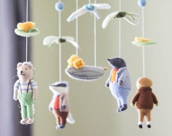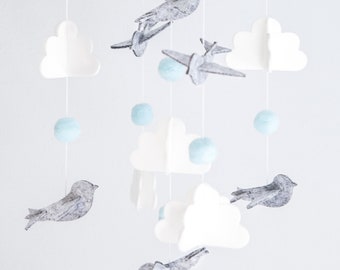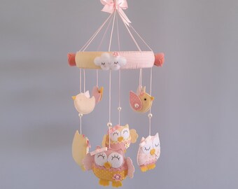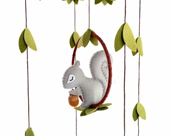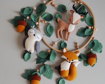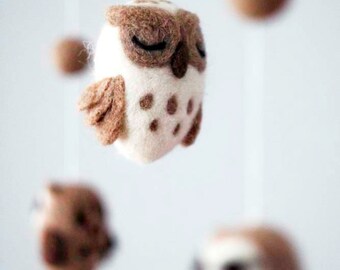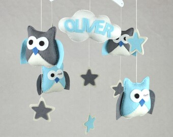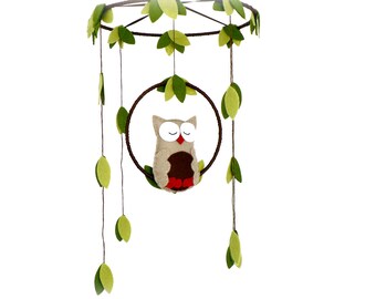 Woodland owl mobile - baby mobile - blue, green and brown - Nursery decor - MADE TO ORDER