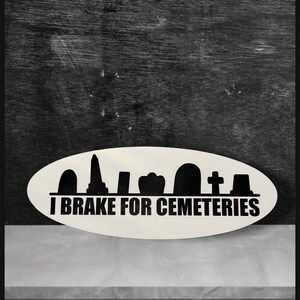 Read the full title I Brake For Cemeteries Headstone Silhouette Oval or Rectangle Sticker