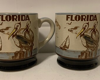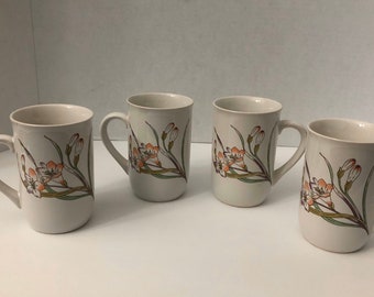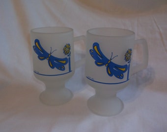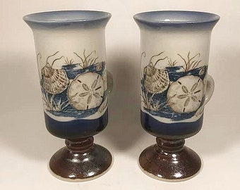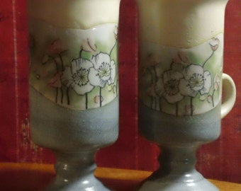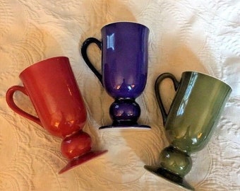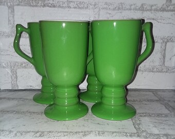 5 Vintage Ceramic Birds Pedestal Irish Coffee Cups Mugs Set